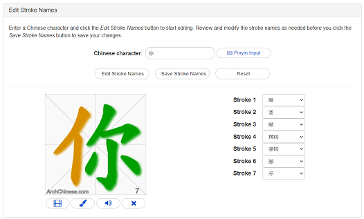 Customize the stroke names of the characters in the vocab lists you create and share with your students.