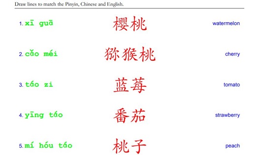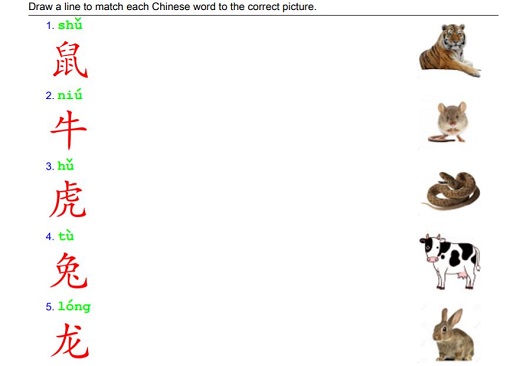 Create Chinese Matching Worksheets (读一读, 连一连) using the Matching Worksheet Maker.