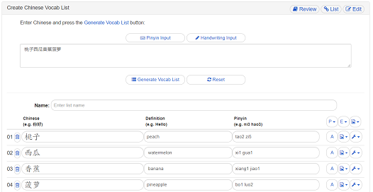 As a teacher, you can create custom vocab lists, post the links on your social media or school web site to share with your students or other Chinese learners.