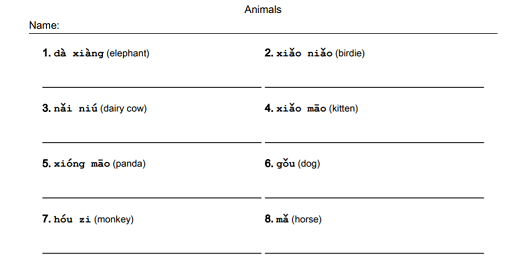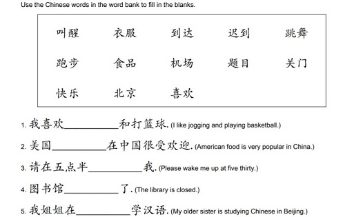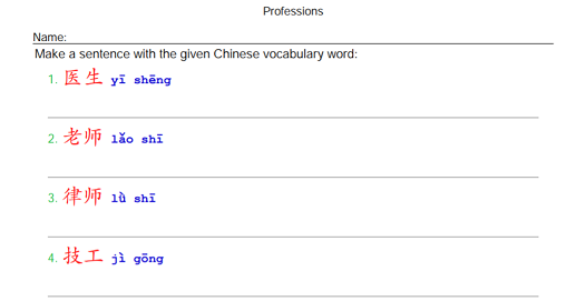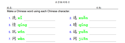 Use Fill-in-the-blank Chinese Worksheet Maker to create your own custom fill-in-the-blank Chinese worksheets for classroom use.