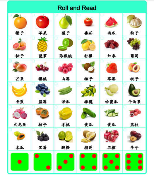 Use Roll-and-Read Game Board Maker to create a custom Roll and Read game board with a list of Chinese characters or words.