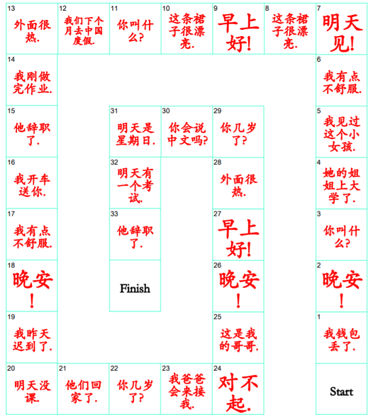 Use Sentence Translation Game Board Maker to create custom sentence translation game boards with a list of Chinese sentences or phrases. By playing this fun Chinese sentence translation game, the students can learn and reinforce Chinese vocabulary and sentences.
