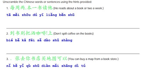 Allow you to generate Chinese sentence making worksheets using our Sentence Making Worksheet Creator.