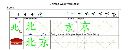 Use our unique Chinese worksheet maker to generate Chinese Chinese word worksheets with character details, including stroke sequences, radicals, and character structure information. Chinese students can use the worksheets to practice Chinese words and individual characters at the same time.