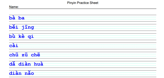 Use Pinyin Practice Sheet Maker to generate Pinyin practice sheets for Chinese learners who haven't yet started learning Chinese characters.